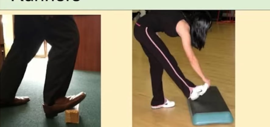 En lite korrektion till sist. När du stretchar vaden för att öka rörligheten i fotleden skal man INTE göra det på straka ben i en trappa. Här är den korrekta metoden. Styrketräning av vaden går fortfarande fint i trappan. Detta är jätteviktigt för att stabilisera bäckenet. Håll sträcket i en minut, två gånger per dag